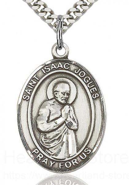 About this St. Isaac Jogues Medal, Sterling Silver, Large + 24" 2.4mm Rhodium Plate Endless Chain