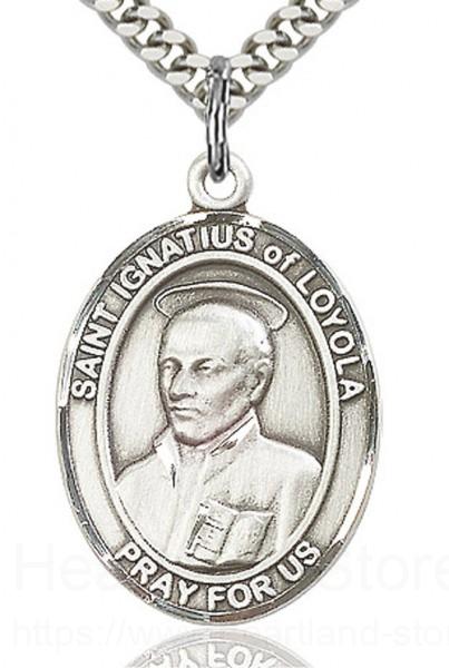 About this St. Ignatius of Loyola Medal, Sterling Silver, Large + 24" Sterling Silver Chain + Clasp