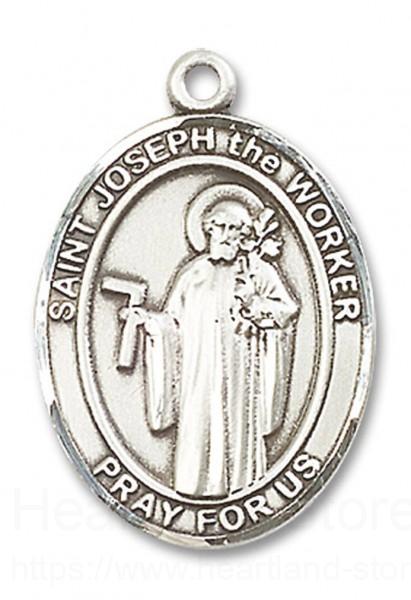 Saint Joseph the Worker Pendant is made of sterling silver and is approximately the size of a quarter.
