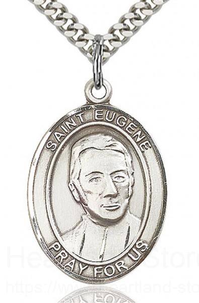 About this St. Eugene De Mazenod Medal, Sterling Silver, Large + 24" 2.4mm Rhodium Plate Endless Chain