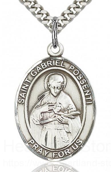 About this St. Gabriel Possenti Medal, Sterling Silver, Large + 24" 2.4mm Rhodium Plate Endless Chain
