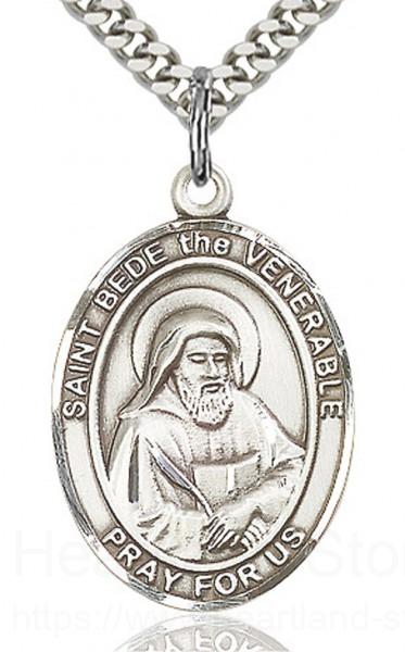 About this St. Bede the Venerable Medal, Sterling Silver, Large + 24" Sterling Silver Chain + Clasp