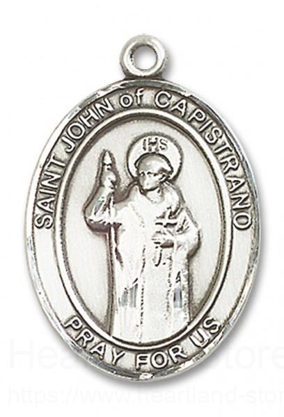 Saint John of Capistrano Pendant is made of sterling silver and is approximately the size of a quarter.