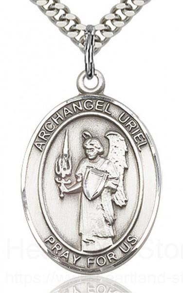 About this St. Uriel Medal, Sterling Silver, Large + 24" 2.4mm Rhodium Plate Endless Chain