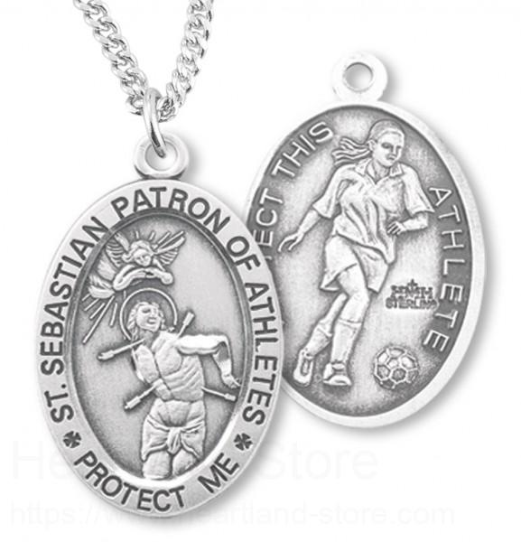 About this Women's Sterling Silver Saint Sebastian Soccer Oval Necklace + 18" 2.2mm Stainless Steel Chain + Clasp
