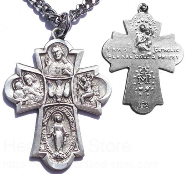 Simple and elegant men's 4 Way Pendant with Holy Spirit in center. We especially like the rounded edges with pointed tips for a great design.