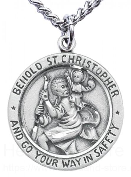 About this Men's Sterling Silver Round Saint Christopher Necklace + 20" 2.2mm Stainless Steel Chain with Clasp