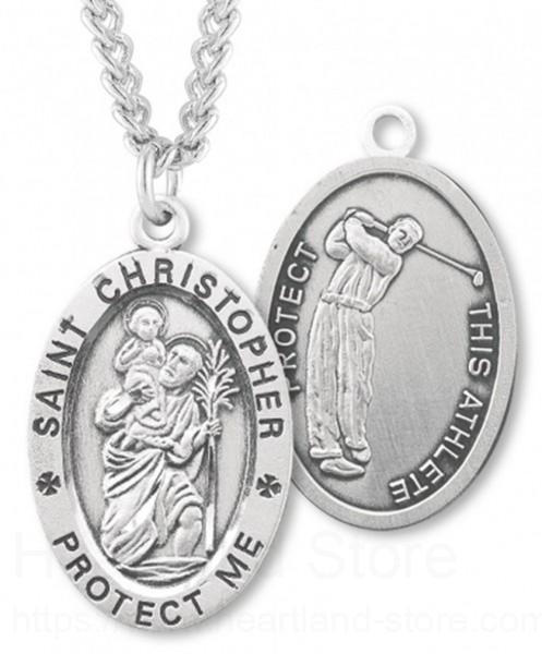 About this Oval Boy's St. Christopher Golf Necklace With Chain + 24" Sterling Silver Chain + Clasp