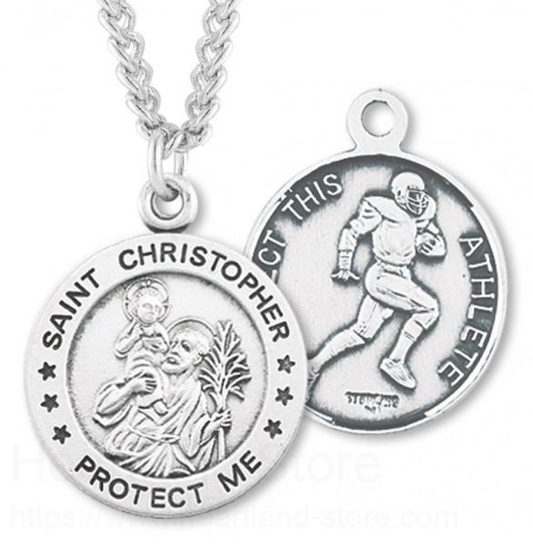 About this Round Boy's St. Christopher Football Necklace With Chain + 20" 2.2mm Stainless Steel Chain with Clasp
