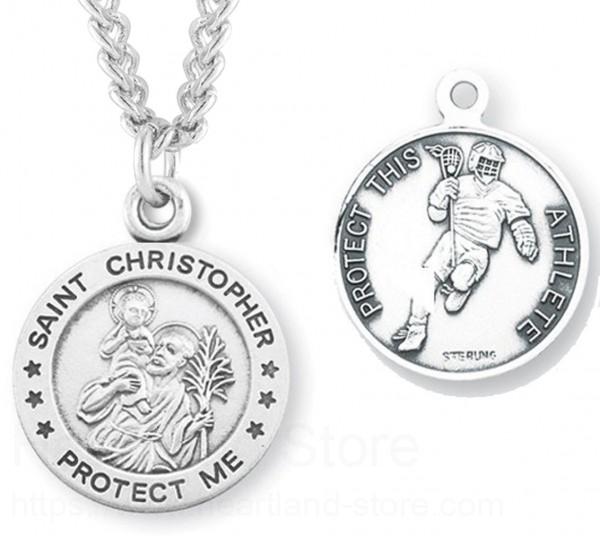 About this Round Men's St. Christopher Lacrosse Necklace With Chain + 24" Sterling Silver Chain + Clasp