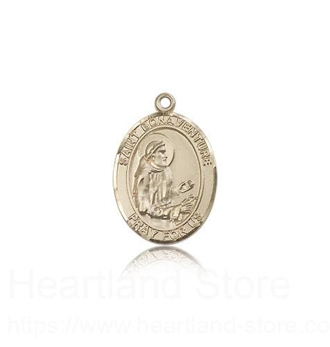 This St. Bonaventure Pendant is made of 14 Karat Gold and is approximately the size of a nickel. The jewelry pendant is sold individually and does not come with a chain. All medals are gift boxed in a beautiful blue velvet hinged jewelry gift box.