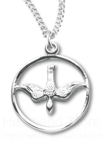Oh how pretty! An open-cut circle with Descending Dove necklace with a high polish finish. Perfect to wear everyday as a reminder of the presence of the Holy Spirit in our lives.