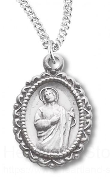 Women's Sterling Silver Oval Saint Jude Necklace with Scalloped Border with Chain Options + 20" 1.8mm Sterling Silver Chain + Clasp