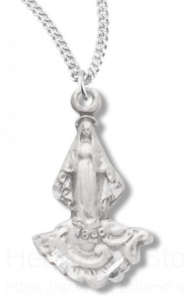 This delicate little Miraculous Charm is shape like the figure of the Blessed Mother as she stands on a cloud. The year 1830 is at the bottom signifying Saint Catherine's first visions.