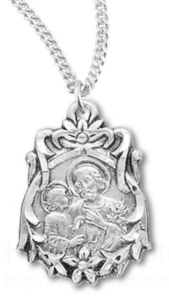 Women's St. Joseph Necklace, Sterling Silver with Chain Options + 18" 1.8mm Sterling Silver Chain + Clasp