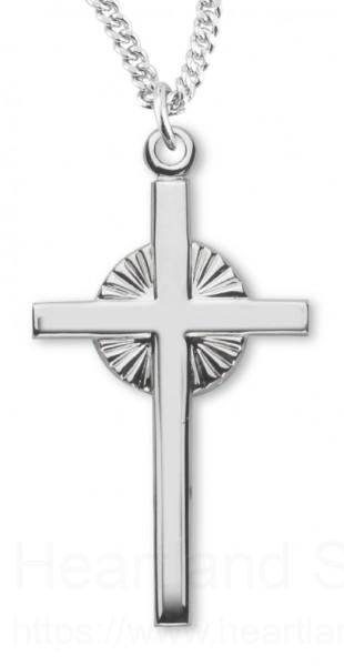 Women's Sterling Silver Cross Necklace with Circular Etched Center with Chain Options + 18" 1.8mm Sterling Silver Chain + Clasp