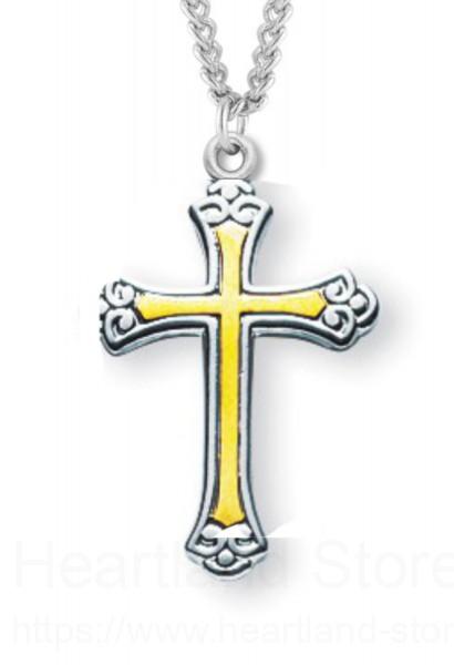 About this Women's Sterling Silver Two Tone Floral Tipped Cross Necklace with Chain Options + 18" 1.8mm Sterling Silver Chain + Clasp