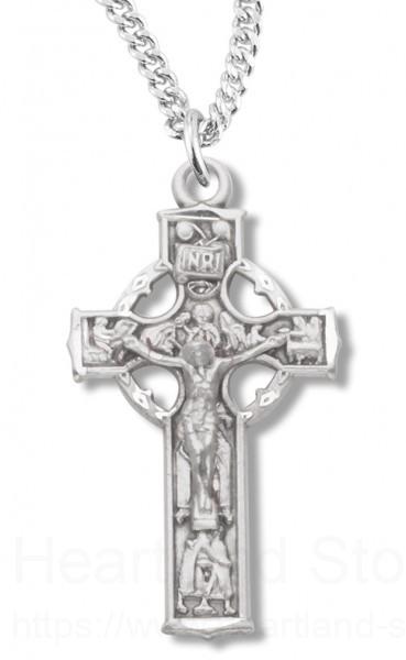 Women's Sterling Silver Celtic Crucifix Necklace with Chain Options + 20" 1.8mm Sterling Silver Chain + Clasp