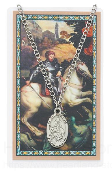 This St. George medal and prayer card combination will make a great gift of sacramental. This medallion displays an image of St. George while riding his horse, defeating the devil.The St. George pendant has the following features;