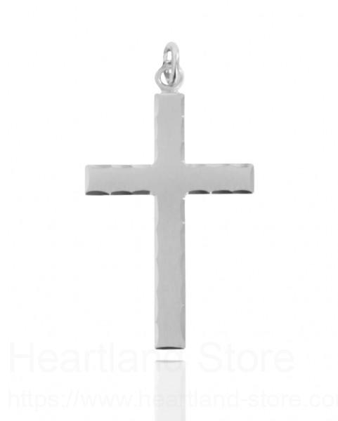 This is a beautifully understated cross made of genuine .925 sterling silver and hand made in the USA. The front features a brushed matte finish with all the edges etched so that it catches the light and glistens. You'll absolutely get great compliments when wearing this cross.