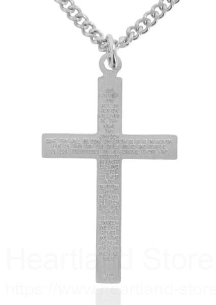About this Men's Sterling Silver Etched Matte Cross with Lords Prayer + 24" 2.4mm Rhodium Plate Chain + Clasp