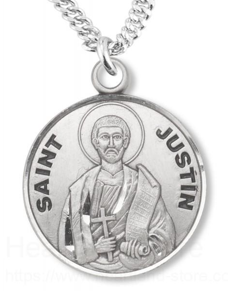 This beautiful round St. Justin Medal is made of fine sterling silver and comes with Chain options. Comes in a Deluxe Velour Gift Box.
