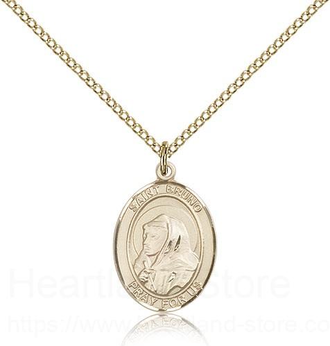 This St. Bruno Pendant is made of gold filled and is approximately the size of a nickel. The jewelry pendant is paired with an 18 inch gold filled light curb chain as pictured. All medals are gift boxed in a beautiful blue velvet hinged jewelry gift box.