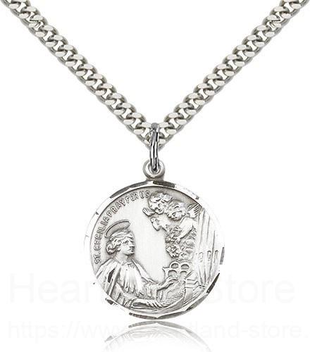 About this St. Cecilia Medal + 24" 2.4mm Rhodium Plate Chain + Clasp