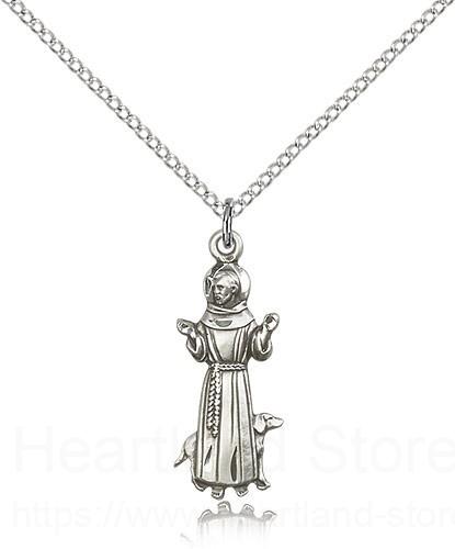 This St. Francis Medal is paired with an 18 inch sterling silver lite curb chain as pictured. All medals are gift boxed in a light blue velvet jewelry box ready for gift giving.