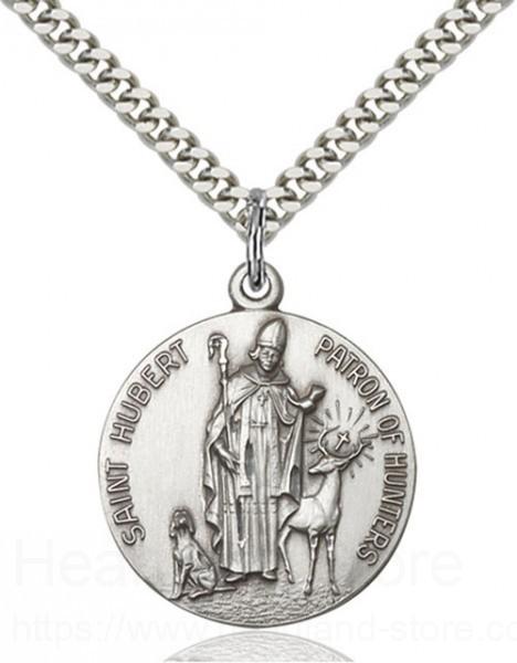 About this Men's Round Sterling Silver St. Hubert of Liège Medal + 24" 2.2mm Sterling Silver Chain + Clasp