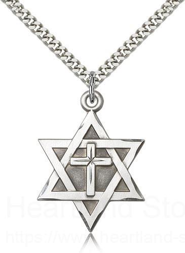 This large Star of David with Cross Pendant is made of sterling silver and is 1ΒΌ" high.