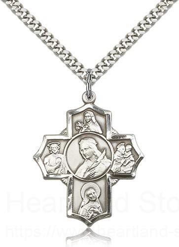 About this St. Philomena, St. Theresa, St. Rita, St. Anthony, St. Jude Medal, Sterling Silver + 24" 2.2mm Sterling Silver Chain + Clasp