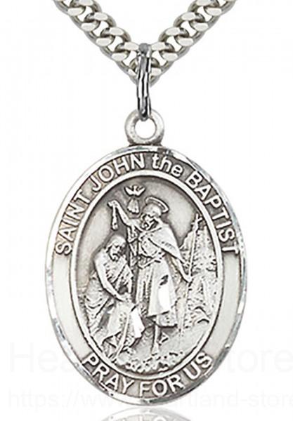 About this St. John the Baptist Medal, Sterling Silver, Large + 24" 2.2mm Sterling Silver Chain + Clasp