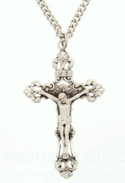 About this Crucifix Pendant, Sterling Silver + 24" Sterling Silver Chain + Clasp