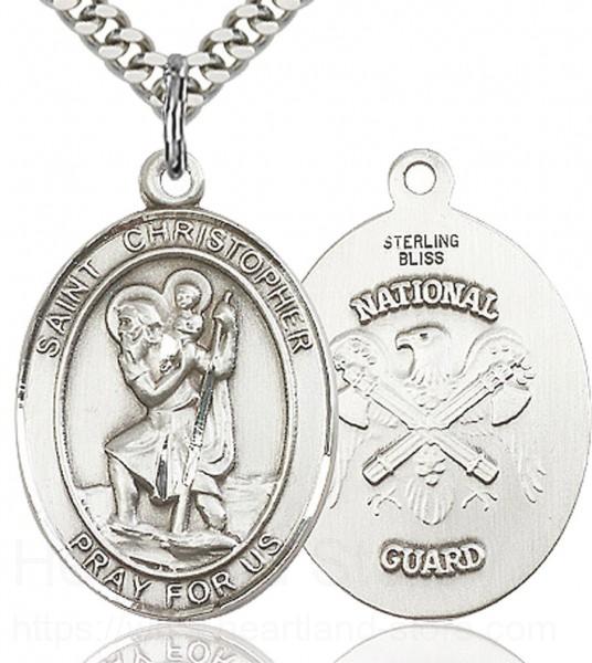 St. Christopher National Guard Medal This St. Christopher National Guard Pendant is made of sterling silver and is approximately the size of a quarter.