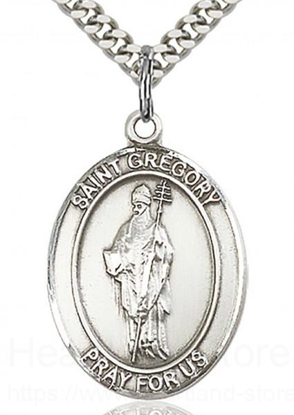 St. Gregory the Great Medal This St. Gregory the Great Pendant is made of sterling silver and is approximately the size of a quarter.