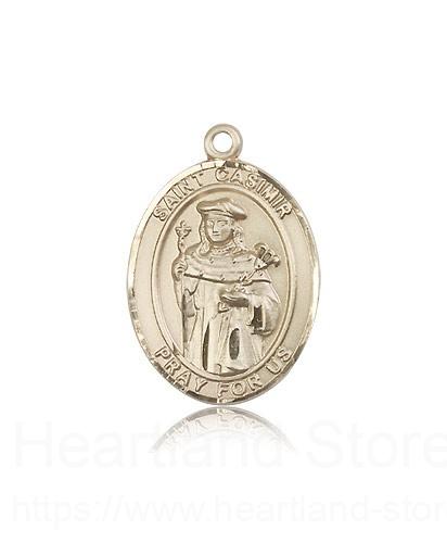 This St. Casimir of Poland Pendant is made of 14 Karat Gold and is approximately the size of a quarter. The jewelry pendant is sold individually and does not come with a chain. All medals are gift boxed in a beautiful blue velvet hinged jewelry gift box.
