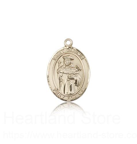 This St. Casimir of Poland Pendant is made of 14 Karat Gold and is approximately the size of a nickel. The jewelry pendant is sold individually and does not come with a chain. All medals are gift boxed in a beautiful blue velvet hinged jewelry gift box.