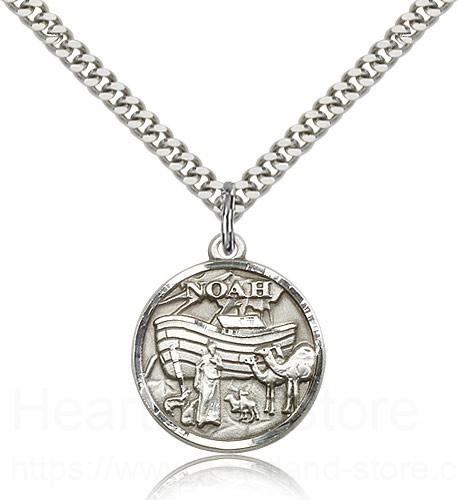 The story of Noah's ark is beautifully depicted on this pendant. The pendant is round in shape and shows the ark, Noah and the animals.