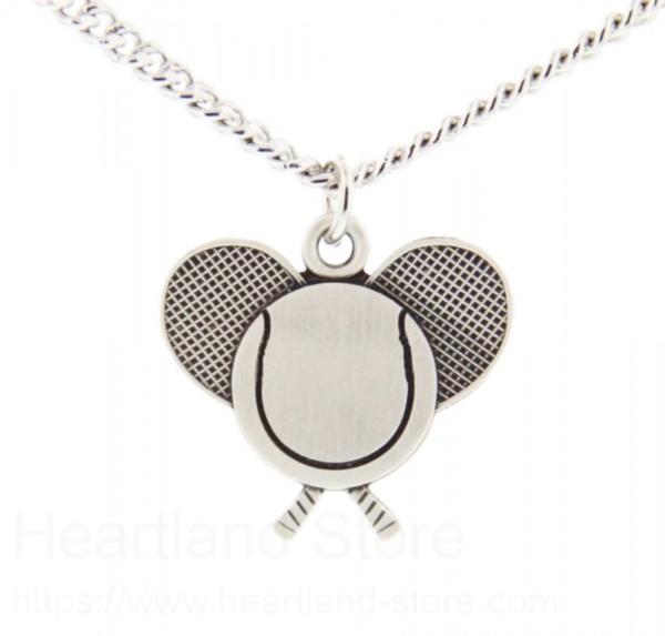 About this Tennis Rackets Necklace with Saint Christopher Back in Sterling Silver + 24" 3mm Stainless Steel Endless Chain