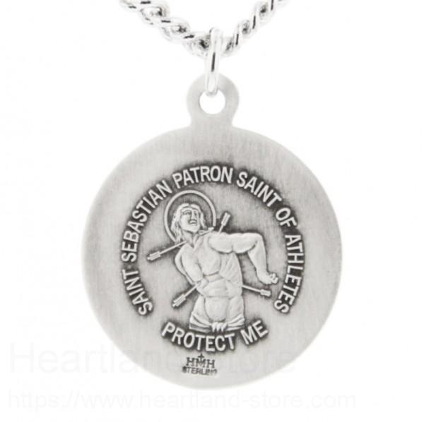 Love to play basketball or just love to watch, this pendant will remind you of the great sport of basketball and your faith. On the back is a raised image of Saint Sebastian. The back of the pendant reads "Saint Sebastian Protect This Athlete".