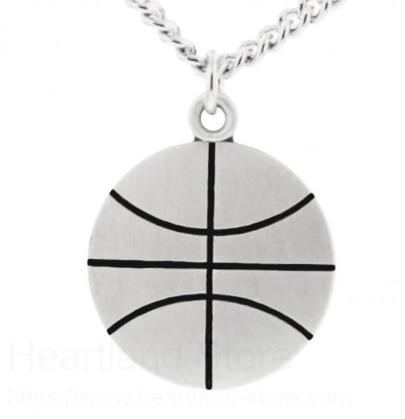About this Basketball Shaped Necklace with Saint Sebastian Back in Sterling Silver + 24" 3mm Stainless Steel Endless Chain