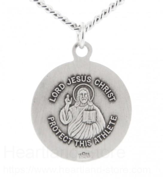 Your faith can stay with you on and off the golf course with this unique golf ball-shaped pendant. On the back is a raised image of Jesus. The back of the pendant reads "LORD JESUS CHRIST PROTECT THIS ATHLETE".