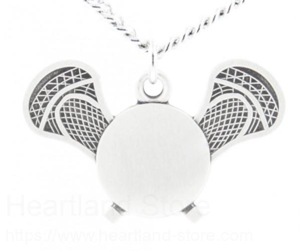 About this Lacrosse Stick and Ball Shape Necklace with Jesus Figure Back in Sterling Silver + 24" 3mm Stainless Steel Endless Chain