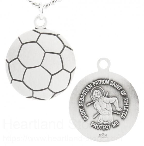 We know boys and men alike enjoy wearing this Soccer necklace. It doesn't matter if you re sitting watching the game or playing the field, this pendant is a sure winner with its soccer ball shape. On the back is a raised image of Saint Sebastian. The back of the pendant reads "Saint Sebastian Protect This Athlete".
