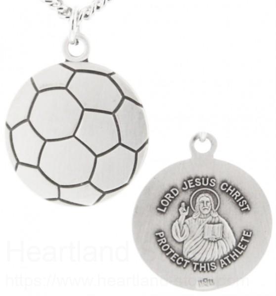 Do you know someone that loves the game of soccer? This is the perfect gift for them! The pendant is in the shape of a soccer ball and on the back is a raised image of Christ. The back of the pendant reads "LORD JESUS CHRIST PROTECT THIS ATHLETE".