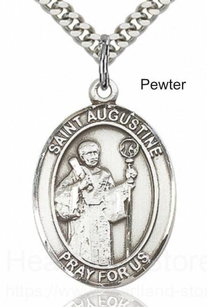 About this Men's Pewter Oval St. Augustine Medal + 24" 2.4mm Rhodium Plate Endless Chain