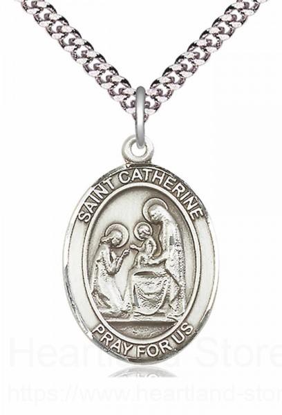 About this Men's Pewter Oval St. Catherine of Siena Medal + 24" 2.4mm Rhodium Plate Endless Chain