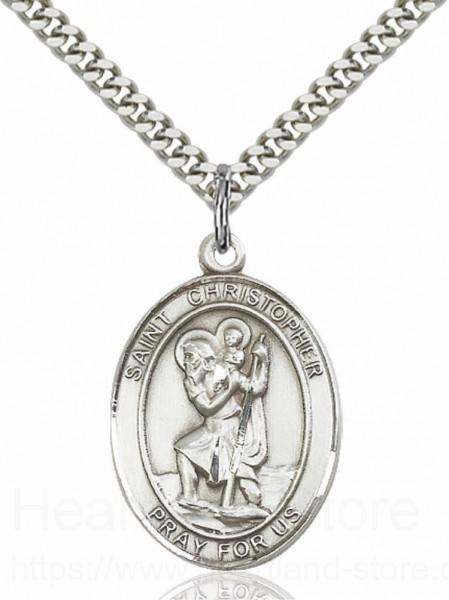 About this Men's Pewter Oval St. Christopher Medal + 24" 2.4mm Rhodium Plate Chain + Clasp
