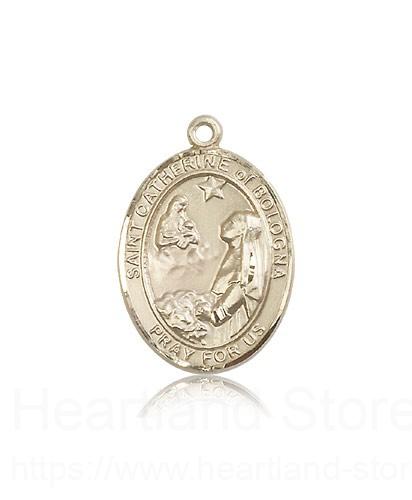 This St. Catherine of Bologna Pendant is made of 14 Karat Gold and is approximately the size of a quarter. The jewelry pendant is sold individually and does not come with a chain. All medals are gift boxed in a beautiful blue velvet hinged jewelry gift box.